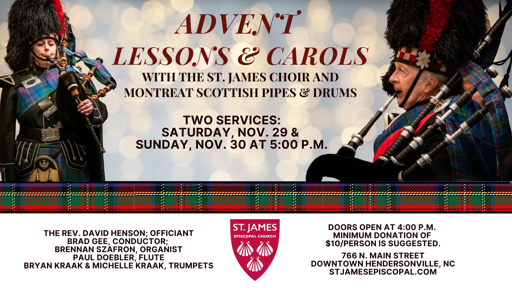 Advent Lessons & Carols with the St. James Choir and Montreat Scottish Pipes & Drums at St. James