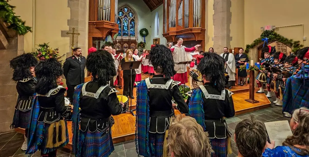 The St. James Choir, led by Gee, will be singing carols and anthems of the Advent season, and they will be joined by instrumentalists on trumpet and flute as well as bagpipes and drums.