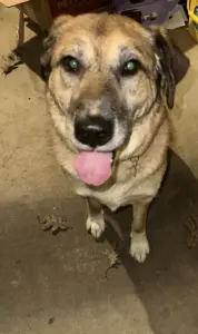 Found on Brevard Rd near the new development, Ecusta Crossing. Older dog with tan and some black coloring with a blue collar.